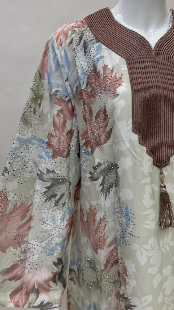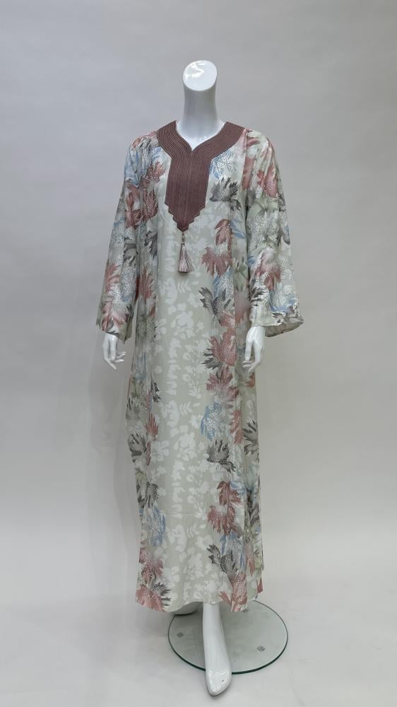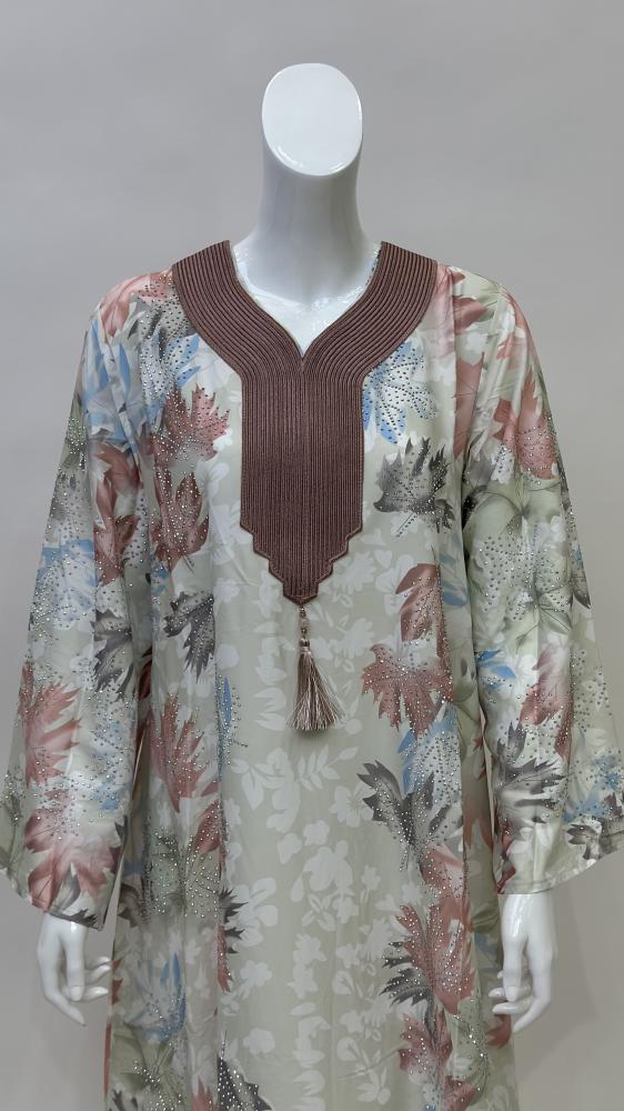 مواصفات جلابية بيج فاتح نسائي طويلة بنقشة زهور: