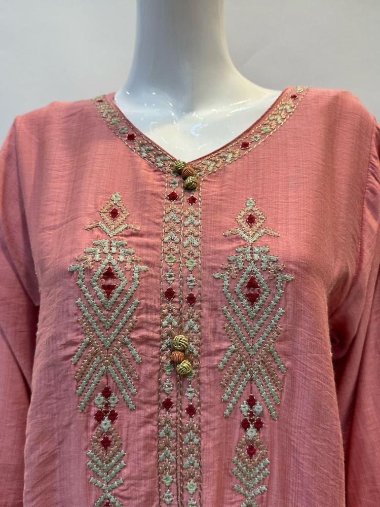 - تطريز دقيق ومميز على الأكمام والجزء الأمامي