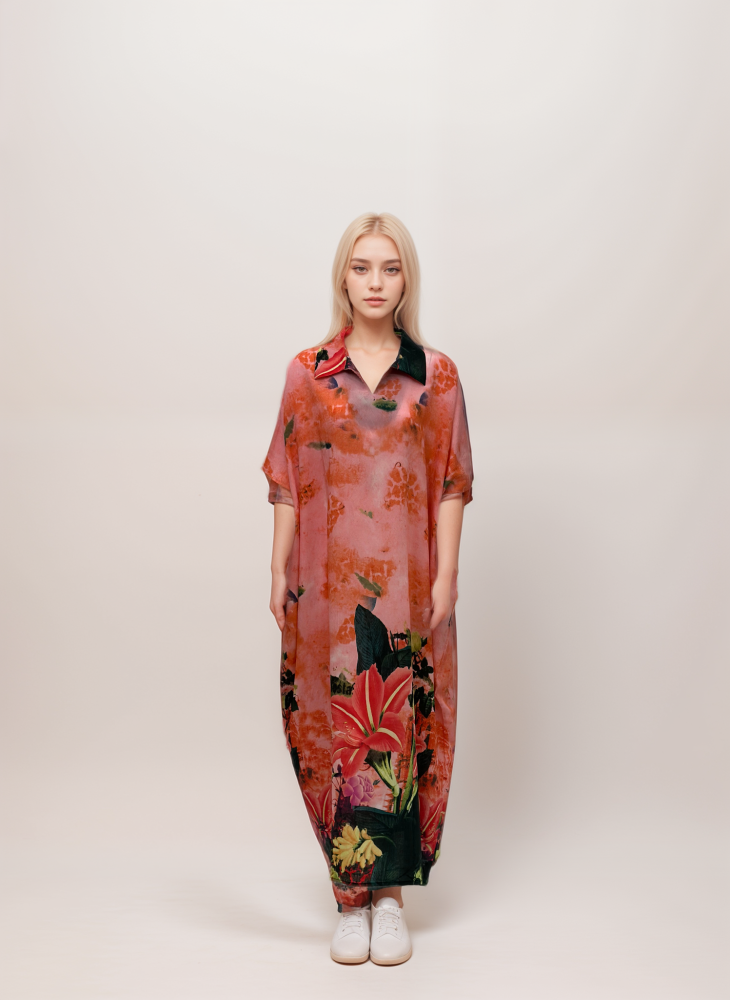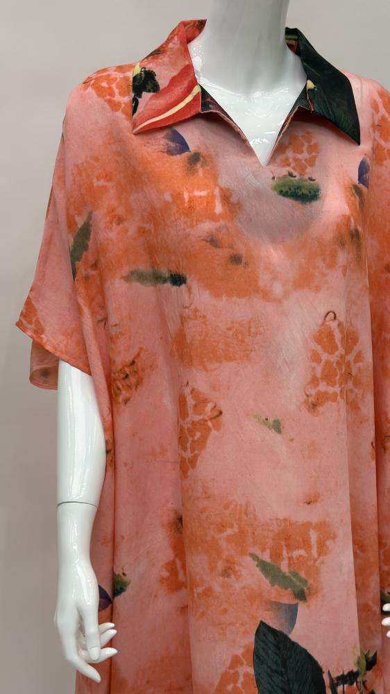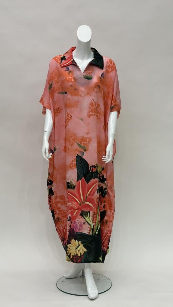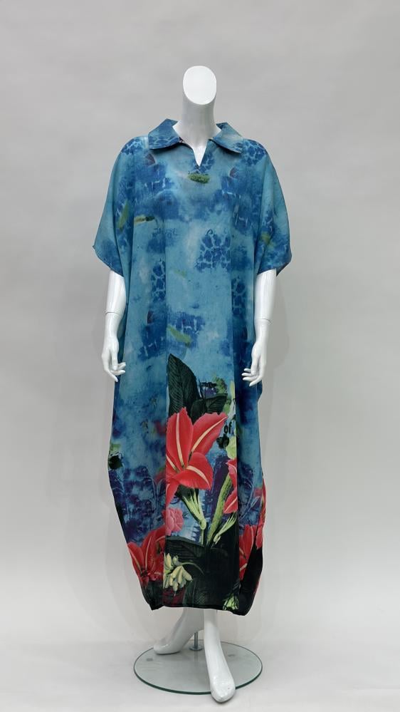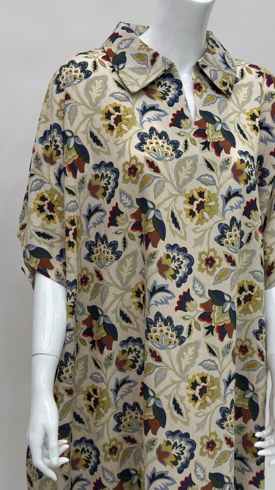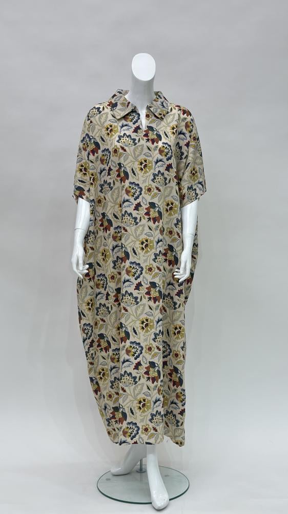 جلابية نسائي منقوشة طويلة نص كم من دكان كتان أفضل متجر في السعودية – تصميم فراشة مريح بنقشة جذابة يضفي لمسة أناقة على إطلالتكِ اليومية. الكمية محدودة.